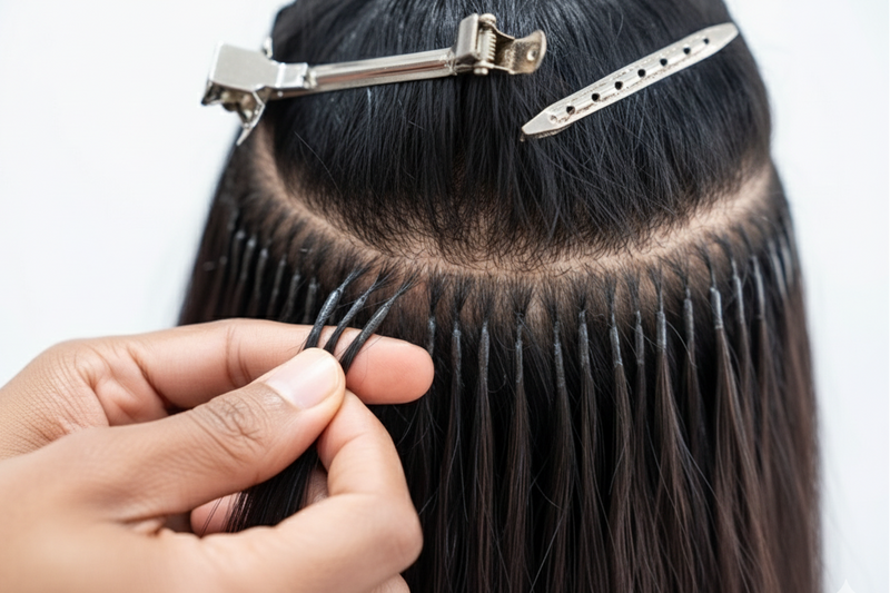 Traditional K-Tips maximize volume by minimizing spacing between bonds. Includes Shampoo, Deep Conditioning, Smoothing Treatment if needed, installation, and styling. Hair is included. Payment plans available.